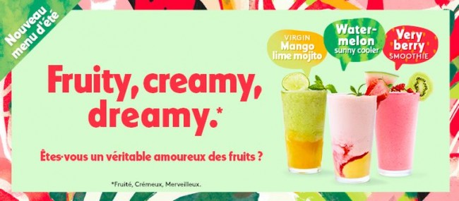 Nous offrons le meilleur aux amoureux de fruits avec ce nouveau menu d’été qui comprend des créations fruitées et crémeuses exclusivement disponibles en boutique.