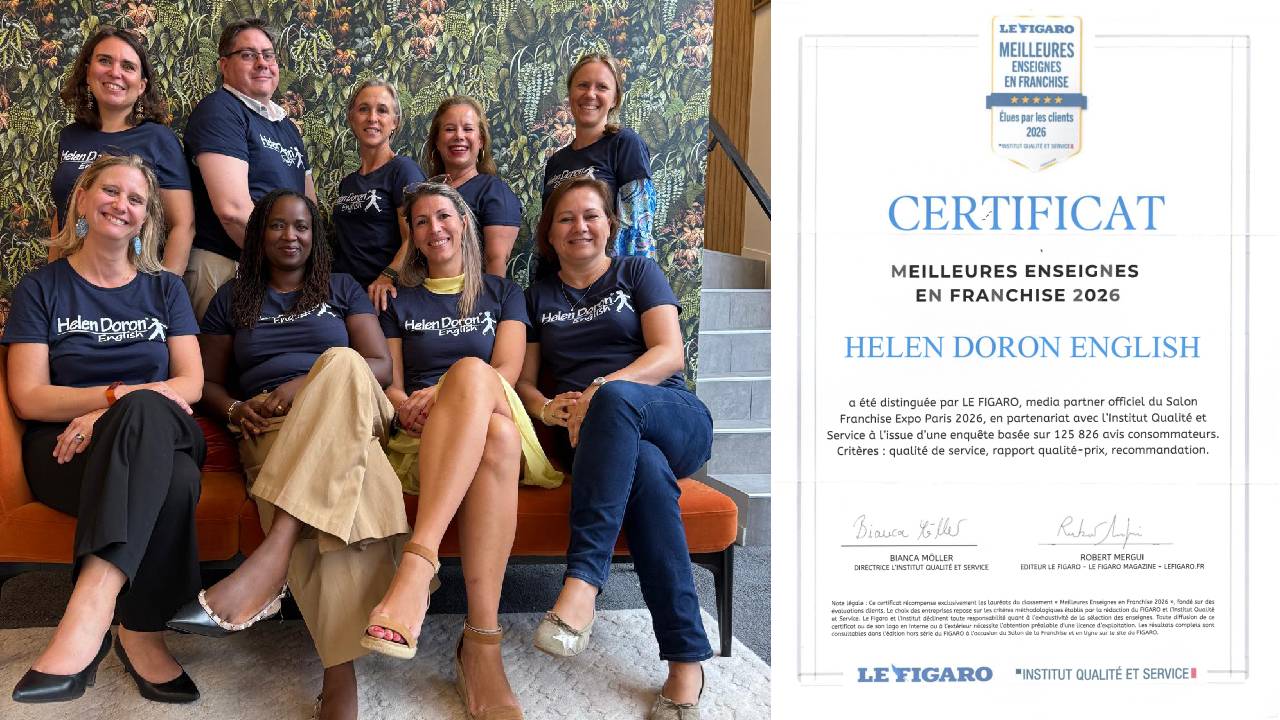 Helen Doron English France vient d’être reconnue parmi les Meilleures Enseignes en Franchise 2026 par Le Figaro. Une reconnaissance qui vient saluer un travail collectif construit dans la durée et porté par un réseau engagé.