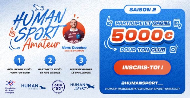Déjà fortement impliqué dans le sport professionnel, le réseau HUMAN Immobilier renouvelle son engagement auprès du tissu associatif local avec le lancement de la 2e édition du Challenge HUMAN Sport Amateur. Cette opération, démarrée le 2 mai 2025, met à l’honneur les clubs amateurs partout en France à travers un concours créatif doté de 50 000 €.