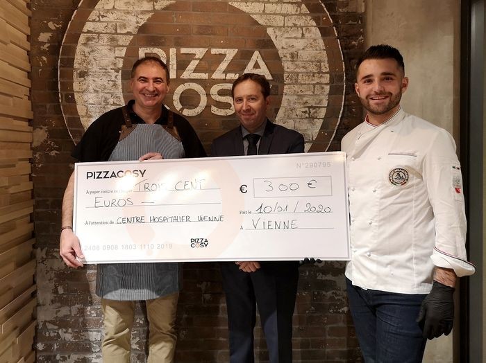 Les ouvertures Pizza Cosy s’enchainent et se ressemblent. L’enseigne de pizzéria fast-good, développée en franchise depuis 2016, applique un modèle bien rodé pour ses ouvertures de restaurant en conjuguant une offre commerciale et une action solidaire en faveur d’un acteur local. Pour l’inauguration de la nouvelle pizzéria Pizza Cosy de Vienne c’est le Centre hospitalier de Vienne qui a bénéficié de la générosité de l’enseigne mais également les clients venus en nombre. Didier Soragna, le nouveau franchisé Pizza Cosy de Vienne, a offert une pizza à ses 300 premiers clients et, pour chaque pizza, reversé 1€ au Centre hospitalier de Vienne. Cette opération a largement contribué au succès de l’inauguration, avec plus de 300 clients pour cette première soirée.