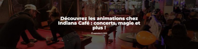 - Magic Indiana : Indiana Café a également érigé en tradition l’organisation de soirées magie pour le plaisir des petits et des grands ;
