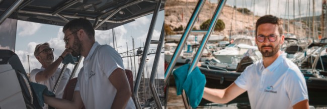 C’est le cas de Mathieu Sibiril et Christophe Lefèvre, beau-fils et beau-père, qui décident ensembles d’intégrer le réseau en Bretagne, dans le Morbihan et de proposer des services de nettoyage et de rénovation de bateaux à base de produits agrées marines en minimisant la quantité d’eau utilisée. Ils reviennent ensembles sur les raisons qui les ont poussés à rejoindre CosmetiBoat :