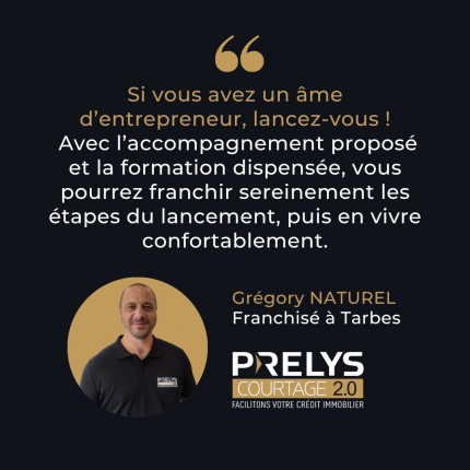Grégory Naturel, franchisé Prelys Courtage à Tarbes nous livre ses impressions sur son réseau de courtage en prêt immobiliers et assurances emprunteurs.