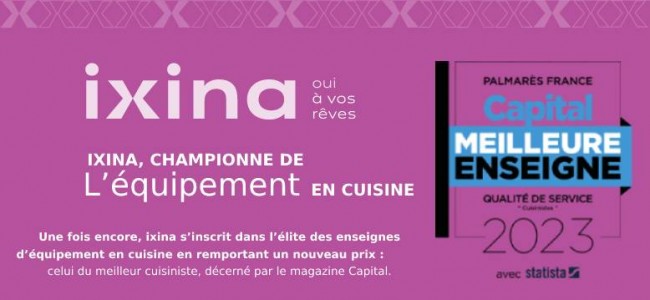 Avec une note de 7.35/10, ixina décroche une haute distinction par le magazine Capital. Elle obtient pour la deuxième année consécutive le prix du meilleur cuisiniste dans la catégorie spécialiste de la cuisine et conforte sa place de référence du secteur.