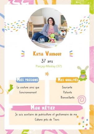 Katia Vaudour, après avoir travaillé dans le domaine de la communication visuelle, décide de changer de carrière en se lançant dans l'aventure de la micro-crèche. Après plusieurs années d'expérience dans ce domaine, elle prend la décision d'ouvrir sa propre structure.