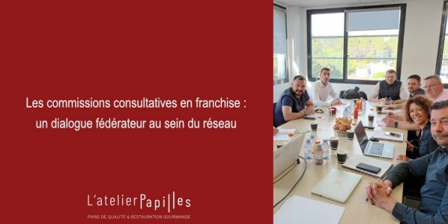 Les commissions sont composées d’un franchisé référent et de 2 franchisés (minimum) siégeant et des représentants du franchiseur. Le lieu d’organisation de ces commissions varie : au siège social de L’atelier Papilles à Aix-en-Provence, mais aussi directement dans les boutiques des franchisés référents pour bénéficier d’une meilleure immersion au sein de la vie quotidienne de chacun. Chez L’atelier Papilles, les franchisés ont la possibilité de rejoindre les commissions consultatives et ainsi jouer un rôle majeur dans leur réussite.