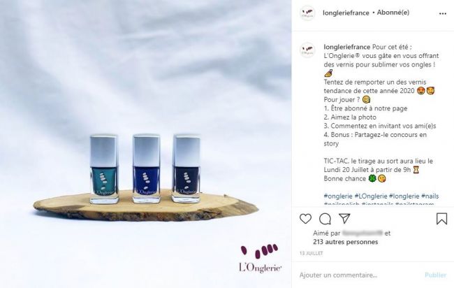 Du côté de Youtube, ce sont notamment les tutoriels nail art qui semble séduire les internautes. Sur Facebook et Instagram, l’interaction avec la communauté est forte, avec par exemple un grand jeu concours proposé au mois de juillet sur les pages de L’Onglerie France et de certains centres. Les participants devant inviter des amis pour valider leur participation, l’opération a su contribuer à la hausse du nombre d’abonnés sur les différentes pages de la marque.