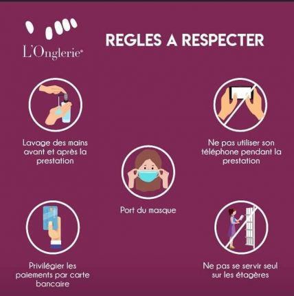Afin d’assurer la sécurité de ses employées et de ses clientes, L’Onglerie a pris toutes les mesures nécessaires pour la réouverture de ses centre de beauté. Les clientes sont ainsi invitées à suivre un certain de nombre de recommandations lors de leur passage dans le centre. Il leur est demandé de porter un masque, de se laver les mains à leur arrivée ainsi qu’en partant, de ne pas utiliser leurs téléphones portables durant le soin et de ne pas se servir seules sur les étagères.