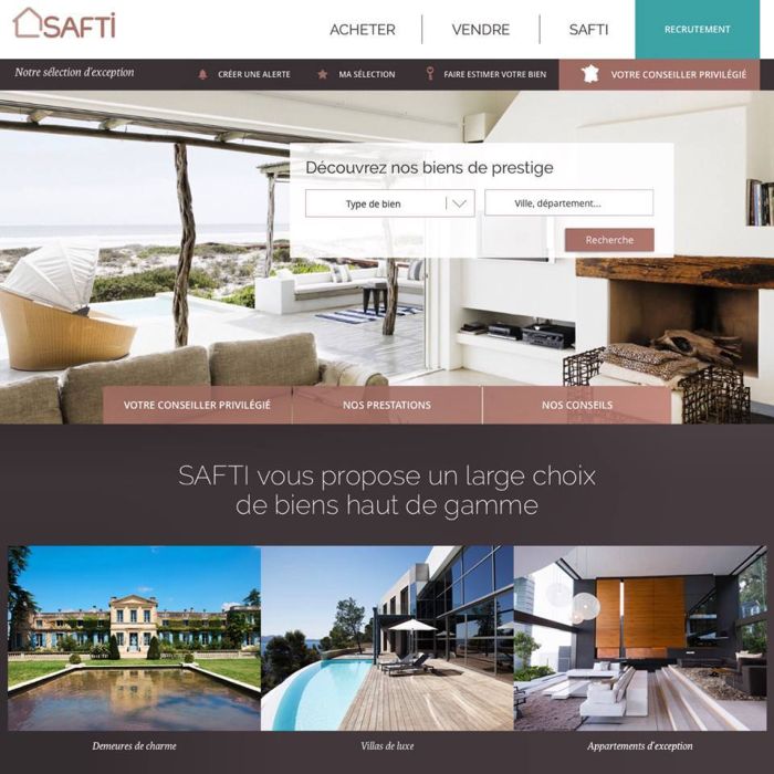 Pour leurs biens de prestige, ils peuvent s’appuyer sur la visibilité de Belles Demeures et Lux Résidence, deux sites de référence en la matière. Autre nouveauté sur ce marché : le réseau vient de mettre en ligne, sur www.prestige.safti.fr, son propre site dédié à l’immobilier de prestige.
