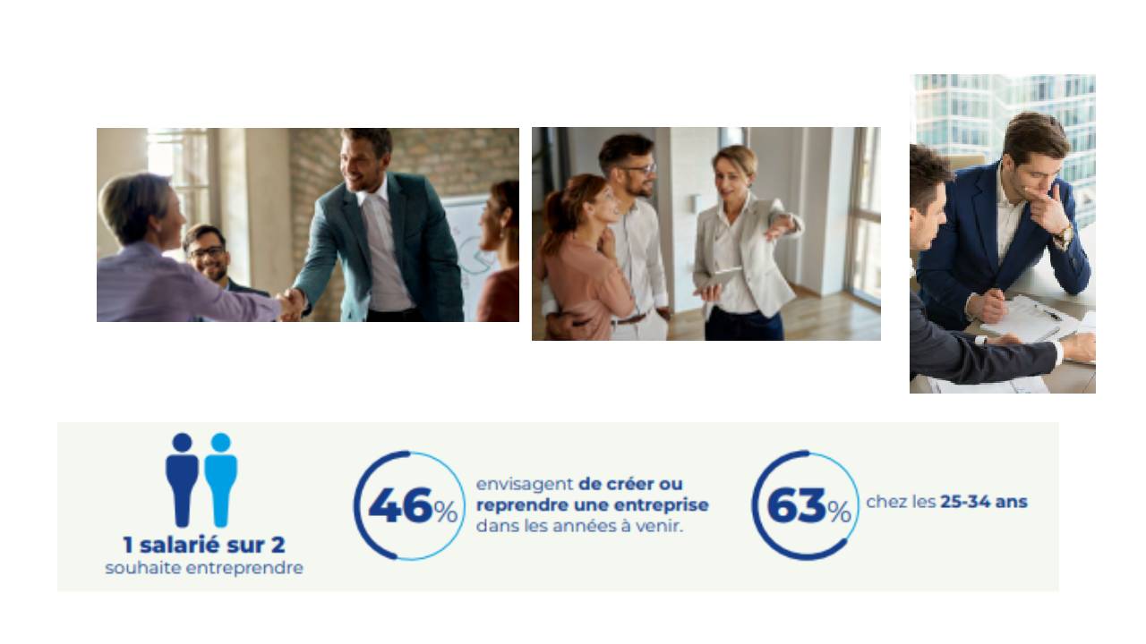 Le désir de créer son activité s’ancre durablement dans les esprits. Près d’un salarié sur deux souhaite entreprendre et 46 % envisagent de créer ou reprendre une entreprise dans les prochaines années. Cette tendance est encore plus marquée chez les 25-34 ans, dont 65 % se projettent dans l’entrepreneuriat.