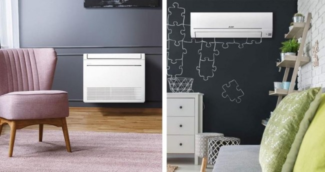 Il s’agit de la solution de pompe à chaleur air/air le plus couramment choisie. Elle est capable de rafraichir et chauffer votre air intérieur. Plus accessible financièrement, elle est aussi facile d’installation. Cet appareil se positionne en hauteur sur un mur, ce qui laisse souvent plus de choix d’emplacement dans le logement. Cependant, il n’est donc pas à portée de main. Son nettoyage supposera de monter sur une chaise ou un escabeau. Cette solution sera également choisie pour les logements ne disposant pas de comble et/ou ayant une hauteur sous plafond standard. Il est possible d’installer plusieurs unités intérieures sur un seul groupe extérieur.