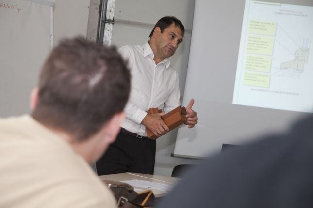 La formation proposée par l’enseigne est faite sur-mesure et s’adresse à un public élargi : technico commerciaux, bureau d’étude… de toutes les enseignes, comme le souligne Bruno : « C’est aussi ce qui en fait la richesse, c’est le partage du vécu de chacun dans leurs métiers. Ils rencontrent des situations différentes auxquelles ils trouvent aussi des solutions sur-mesure. Ainsi, chacun enrichit l’autre de son expérience et nous formateurs, nous le prenons en compte pour faire évoluer nos futures formations ; c’est un cercle d’amélioration continue », indique-t-il dans un premier temps, avant de poursuivre : « Le très bon poseur a pu oublier. On ne sait plus toujours pourquoi on fait une tâche qui est devenue un quasi automatisme avec le temps. Quelque chose peut avoir évolué, le matériau, la machine, mais on n’en tient pas compte. Ce sont des piqures de rappel et d’évolution à la demande et à l’offre. Il faut aussi faire attention au transfert aux débutants. Il ne faut pas les polluer avec des mauvaises habitudes… »