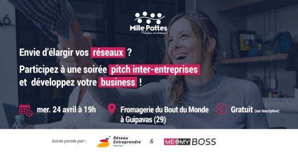Le réseau d’accompagnement en recrutement pour les des TPE/PME, Me & My BOSS, organise aux côtés du Réseau Entreprendre Bretagne une soirée « Mille-Pattes » à Brest le 24 avril prochain.