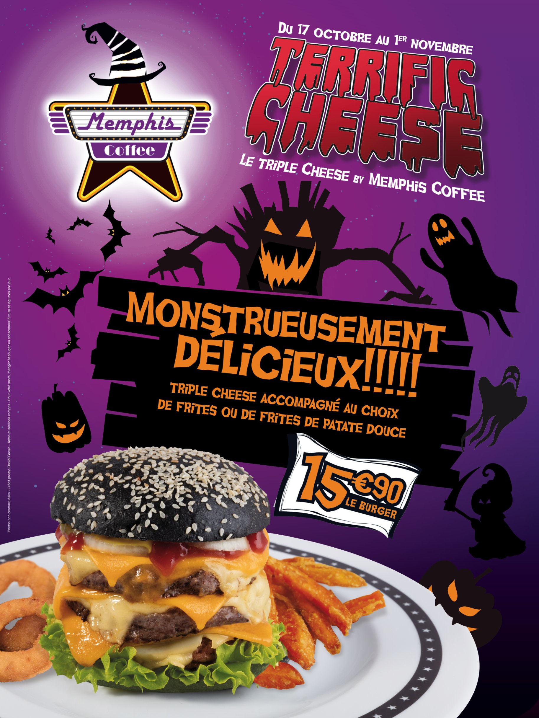 Du 17 octobre au 1 er novembre 2016, les restaurants Memphis Coffee se mettent aux couleurs d’Halloween et plongent leurs clients au cœur de cette célèbre fête américaine. Décoration de la mort, burgers épouvantes, cocktails sanguinolents, bonbons à volonté… l’ambiance s’annonce TERRIFIC !