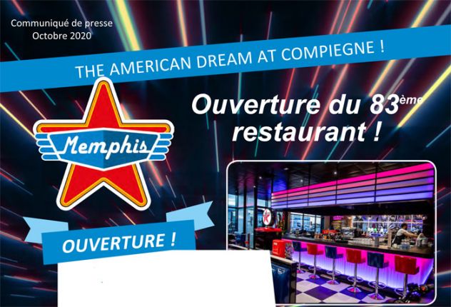 L’enseigne de restaurants à thème Memphis poursuit son développement dans l’Oise, où elle compte déjà 2 établissements, avec l’ouverture, en succursale, de son 83ème point de vente, situé à Compiègne.