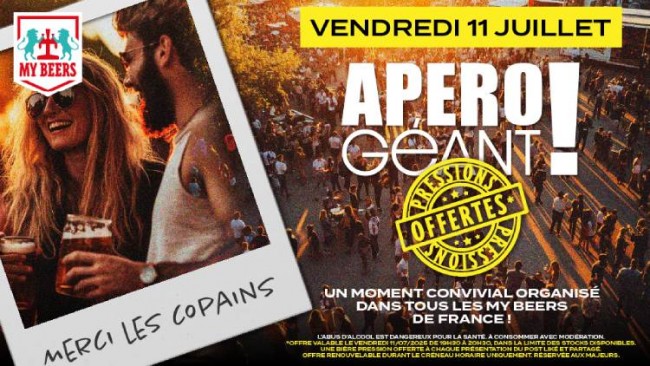 Le 11 juillet prochain, My Beers organise un événement d’envergure baptisé « L’apéro géant des copains » dans l’ensemble de ses bars participants. De 19h30 à 20h30, la première pression de Konrad sera offerte à tous ceux qui auront « liké et partagé le post de l’évènement ». Une opération simple et généreuse, fidèle à l’ADN de l’enseigne : faire plaisir à ses clients et créer du lien autour d’un bon verre.