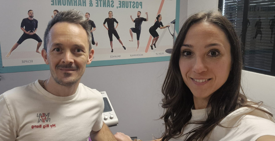 « Le bien-être fait partie intégrante de notre philosophie de vie. Dès ma première séance d’essai, j’ai compris le potentiel de l’électrostimulation et la puissance du concept My Big Bang. C’est une activité qui allie performance, bienveillance et accompagnement humain. J’ai tout de suite su que je voulais en faire partie », confie Sébastien