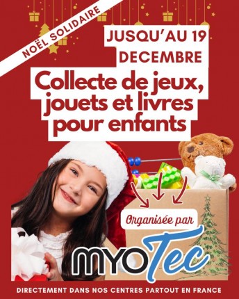 Une collecte nationale pour un impact local MyoTec prouve que solidarité et performance peuvent aller de pair. Chaque centre du réseau devient un véritable point de ralliement pour la collecte. L’objectif ? Apporter à Noël un sourire aux enfants hospitalisés, en orphelinats ou accompagnés par des associations locales durant la période festive.