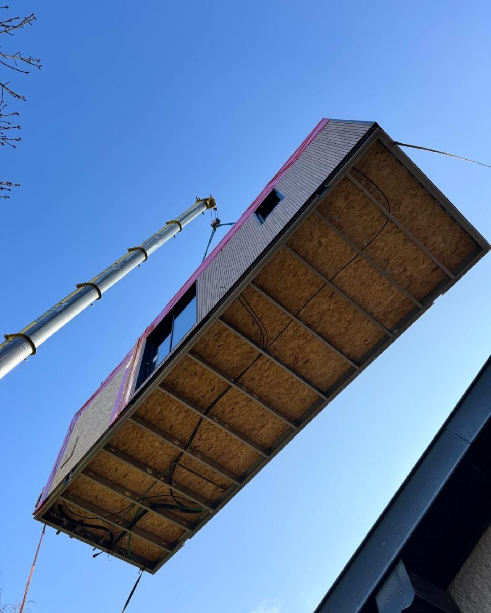 Parmi les instants marquants vécus par les clients, un revient systématiquement : celui du grutage. Véritable moment d’émotion, il symbolise la concrétisation d’un projet de vie. Comme l’explique l’équipe de NATIBOX Atlantique :