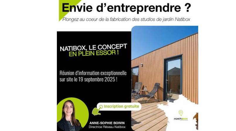 Le réseau NATIBOX innove en organisant, pour la première fois, une réunion d’information en immersion totale. Le rendez-vous est fixé au 19 septembre, directement au sein de son usine POBI, là où sont conçus et fabriqués ses studios de jardin.