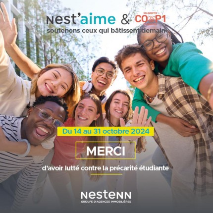 Entre le 14 et le 31 octobre, la franchise Nestenn s'est engagée au côté de l'association COP1 pour collecter dans l'intégralité de ses agences des dons pour les étudiants en situation de précarité. Un véritable succès avec plus de 230 cartons récoltés.