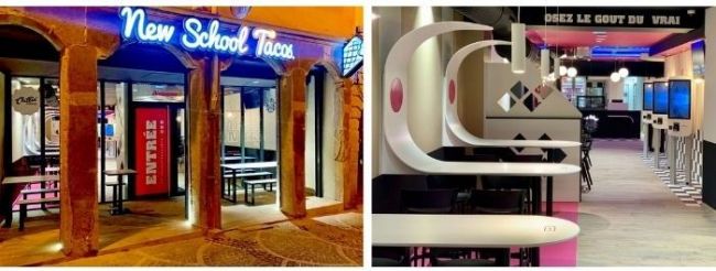 Situé au 30 Rue des Martyrs de Vingré, au cœur de Saint-Etienne, ce nouveau restaurant New Shool Tacos s’étend sur 200 mètres carrés de surface dans une des rues les plus fréquentées de la ville. Il arbore le design New School Tacos et ses équipements numériques parmi lesquels trois bornes de commande. Animé par une équipe d’une dizaine de personnes, il a rencontré un franc succès dès son ouverture, le 5 décembre.