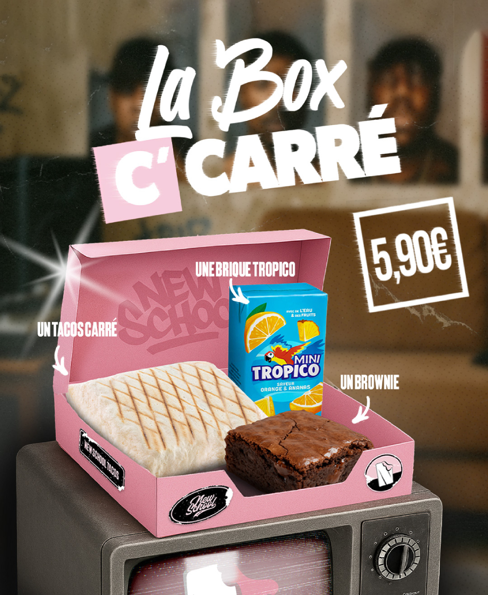Chez New School Tacos, innover signifie s’adapter aux usages réels des consommateurs. Dans un contexte où « repas complet, rapide et accessible » devient un critère essentiel, l’enseigne lance le menu C Carré, proposé exclusivement sur place à 5,90 €.