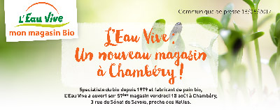 Le 18 août dernier le 57e magasin bio L’Eau Vive a ouvert ses portes à Chambéry, en Savoie, au 3 rue du Sénat de Savoie, à proximité des Halles. Véritable supérette bio couvrant l’ensemble des besoins alimentaires de la famille, ce nouveau magasin permettra aux chambériens de bénéficier des 38 ans d’expérience de l’enseigne dans l’épicerie bio.L’essentiel du bio dans 140 m²