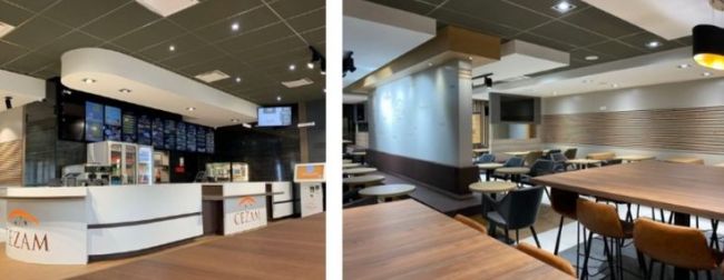 Le concept de restauration « CEZAM » a été créé en 1998. L’idée est de proposer à la clientèle des plats Brasserie et des Sandwiches préparés à la commande, constitués de produits frais et halal, dans une atmosphère décontractée.