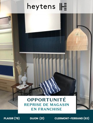 Envie d’en savoir davantage sur cette opportunité de reprise et, plus largement, sur l’offre d’accompagnement du réseau pour ouvrir un magasin spécialisé dans la décoration de la fenêtre ? Rendez-vous sur la fiche de présentation de la franchise Heytens et, pour prendre contact avec l’équipe de développement du réseau, renseignez le formulaire de demande de documentation ⇩