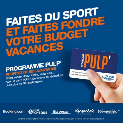 Depuis ce programme est un succès, selon une étude d’IPSOS*, les adhérents économisent en moyenne 2125€ par an et par foyer. Un abonnement à l’Orange bleue n’apporte donc pas seulement du bien-être, des bienfaits psychologiques et corporels, c’est aussi un bénéfice pour le porte-monnaie ! Les adhérents peuvent retrouver sur le site internet et l’application PULP’ des réductions sur leurs achats et loisirs quotidiens grâce aux nombreuses catégories présentes : courses alimentaires, voyages, loisirs, mode, beauté… Jbl, Adidas, Cdiscount, le Parc Asterix, Uber Eat… toutes les plus grandes marques se retrouvent sur PULP’ !