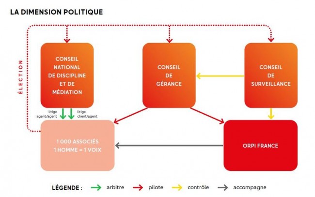 Porté par les seuls membres de son réseau, le système coopératif d’Orpi repose sur la force du collectif où chacun contribue au développement de ses confrères et consœurs. Un esprit de solidarité qui bénéficie à l’ensemble des 8.000 collaborateurs et 1.000 associés du réseau, représentés par 52 GIE (Groupement d’Intérêt Économique) partout sur le territoire.