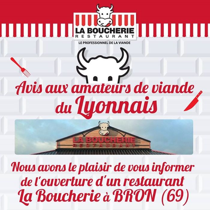 Ce nouveau restaurant La Boucherie est situé rue Maryse Bastié, dans la zone commerciale de Bron. Il est ouvert sept jours sur sept et propose deux services, de 12h à 14h30 et de 19h à 22h30 (23h les vendredis et samedis soirs).