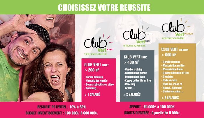 Aujourd’hui, l’enseigne travaille à se développer sur l’ensemble du territoire, accueillant des investisseurs et créateurs d’entreprise en quête d’un partenaire pour développer une activité sur un marché en plein essor. Le réseau Club Vert s’intéresse aux candidats ayant de solides compétences en management, des qualités de gestionnaire et, bien sûr, un très bon sens du contact. Le concept est idéal pour des personnes en reconversion ayant une réelle affinité pour le sport et l’envie d’accompagner les autres dans leur pratique quotidienne.