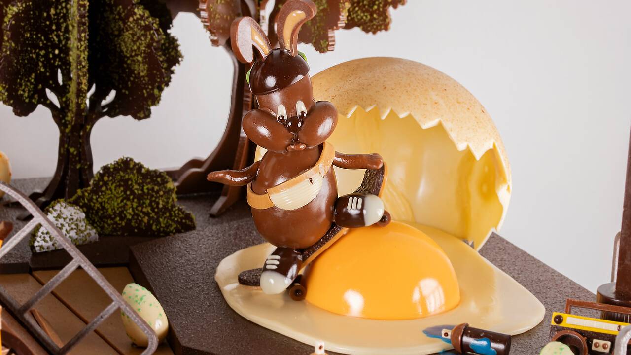 Les collections de Pâques s’accompagnent également de montages chocolatés qui participent à l’univers créatif de la marque. Parmi les créations imaginées cette année figurent le lapin « So cool » à la casquette décalée, le lapin skateur réalisant sa figure « Œuf au plat » ou encore le lama « Star du skate ». Chaque pièce est conçue pour émerveiller petits et grands gourmands tout en renforçant l’impact visuel des vitrines.