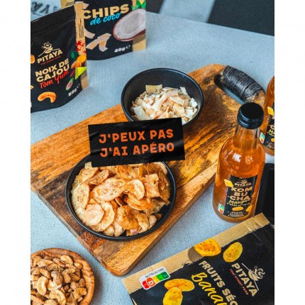 La gamme épicerie de la franchise PITAYA vient de s’étoffer de 4 nouveaux snacks gourmands et exotiques : des chips de coco, des bananes séchées, du riz soufflé au miel et aux noix et des noix de cajou tom yum.