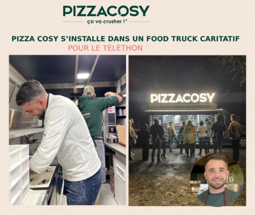 Engagée dans des actions caritatives, Pizza Cosy, élue meilleure enseigne de pizza à emporter ou livrée en 2023, a marqué les esprits en déployant à Saint-Etienne un food truck caritatif dédié au Téléthon les 8 et 9 décembre derniers.