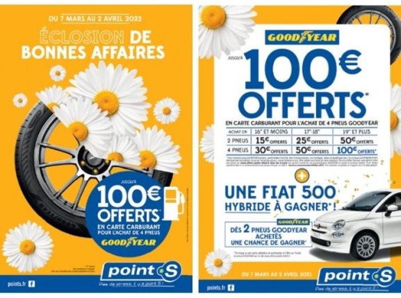 Les clients de l’enseigne pourront recevoir une carte carburant d’un montant pouvant atteindre 100 € pour l’achat et le montage de quatre pneus Goodyear de tous types (été, hiver, 4 saisons, tourisme, 4x4 et camionnette). Point S signe un nouveau partenariat avec Goodyear et poursuit ses offres promotionnelles sur le pneumatique et l’entretien auto.