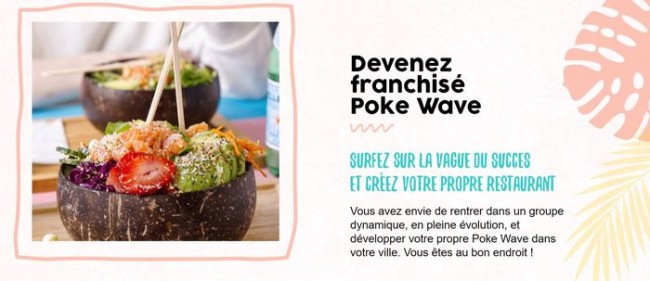 Spécialisée dans les Poke Bowls, Poke Wave vient tout juste de s’ouvrir à la franchise afin de dupliquer son concept sur l’ensemble du territoire. Si le réseau est encore jeune, il bénéficie d'une solide expérience de dix ans dans le secteur de la restauration rapide sur laquelle s’appuyer pour accompagner ses franchisés vers la réussite.