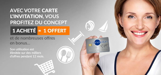 Avec sa carte de réduction permettant de faire de substantielles économies sur les loisirs et sorties –– sur le principe du 1 acheté = 1 offert ou encore avec des remises allant jusqu’à 30%, l’enseigne Carte l’Invitation se pose en amplificateur de pouvoir d’achat auprès des consommateurs. Carte l’Invitation permet ainsi aux particuliers, mais également aux entreprises, comités d’entreprise et autres amicales du personnel et associations, de bénéficier de milliers d’offres de réduction aurpès de ses partenaires commerçants et professionnels du loisir et de l’hôtellerie restauration,.