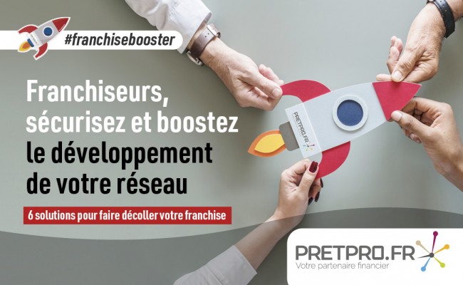 Pour mieux répondre aux enjeux auxquels sont confrontées les têtes de réseaux dans leur développement, pretpro.fr a mis au point une offre de six solutions qui sera présentée aux franchiseurs sur le salon Franchise Expo Paris. L’offre #franchisebooster réunit six services pour faciliter et accélérer la croissance des réseaux dans une suite logique : la structuration des têtes de réseaux, le recrutement de candidats, la recherche d’emplacements, l’accès au financement des candidats à la franchise et des franchisés installés, la mise en place de contrats d’assurance spécifiques à la franchise.