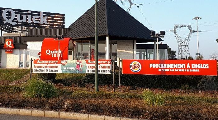 Le 18 février dernier, le restaurant Quick du centre commercial d’Englos a servi son dernier Quick N’ Toast. L’établissement a définitivement fermé ses portes pour engager d’importants travaux d’aménagement destinés à l’ouverture d’un nouveau restaurant Burger King. Cette opération s’inscrit dans le plan Quick N’King 2020 porté par le groupe Bertrand, master franchisé Burger King pour la France, et qui prévoit la conversion des restaurants Quick en Burger King au rythme de quelque 90 restaurants par an pour atteindre les 600 Burgers King en France d’ici 2020.