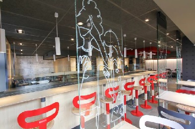 Situé au 342, route Nationale, près de la zone commerciale Les Epis et du Centre Hospitalier de Douai, le nouveau Quick Férin s’étend sur une superficie de 484m², ce qui lui permet de d’accueillir 140 personnes en salle et 70 en terrasse. Le nouveau restaurant, bâti en « cube », réserve à sa clientèle un décor chaleureux avec ses boiseries claires et ses grandes façades vitrées, qui favorisent aussi les économies d’énergie.