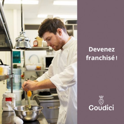 Avec un concept performant et novateur proposant un service de livraison de plats frais, locaux et de saison aux entreprises, Goudici offre une opportunité exceptionnelle à tous les passionnés de cuisine qui souhaitent rejoindre son réseau en devenant traiteur indépendant.