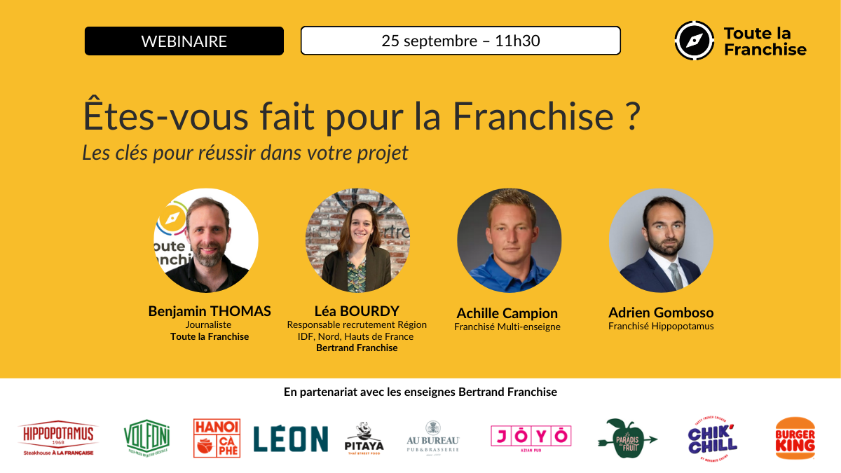 Replay Webinaire "Êtes-vous fait pour la franchise ? Témoignages de 2 franchisés (Bertrand Franchise)