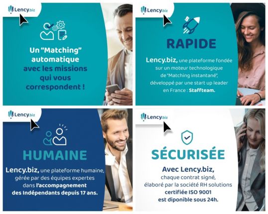 Conçu par la start-up Staffteam, l’outil utilise les technologies de matching instantané pour faire correspondre profil et mission, notamment grâce au système des mots clés. Un véritable gain de temps pour les indépendants qui bénéficient en outre de l’appui d’une équipe experte en ressource humaine qui valide chaque mise en relation. Lency.biz offre enfin une réelle sécurité, puisque chaque contrat signé est disponible sous 24h dans un cadre juridique clair.