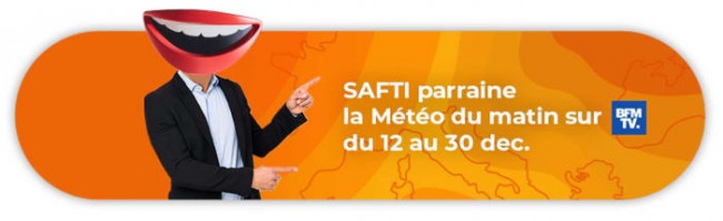 Grâce à son parrainage de la météo matinale de la chaîne d’information en continu BFMTV, depuis le 12 décembre dernier et jusqu’au 31 décembre prochain, l’enseigne immobilière SAFTI sera visible 240 fois sur cette période par des millions de téléspectateurs quotidiens.