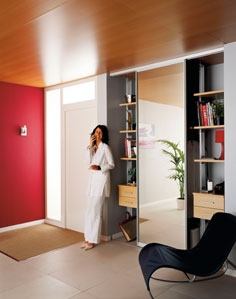 Placard ligne les Design Rangement décoratif de mise ! Les portes de placard en miroir donnent une sensation d’espace et d’ouverture vers les autres pièces.