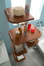 Alova Blanc Givré Brillant, avec Ligne de rangement Les Design Cette salle de bains offre un maximum de fonctionnalité et d’esthétisme. Le coloris Blanc Givré Brillant du meuble coulissant associéà la ligne de rangement LES DESIGN, en merisier blond expriment l’harmonie.