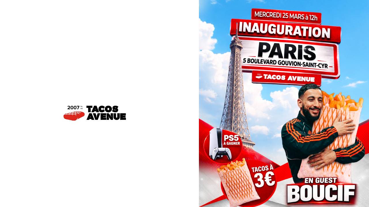 Pour accompagner l’inauguration, plusieurs actions ont été déployées afin d’assurer la visibilité du point de vente. L’événement sera notamment soutenu par la présence de l’influenceur Boucif, mobilisé pour dynamiser le lancement. Une offre promotionnelle, avec un tacos proposé à 3 €, viendra compléter le dispositif, aux côtés d’animations sur place et de cadeaux destinés à attirer et fidéliser les premiers clients.